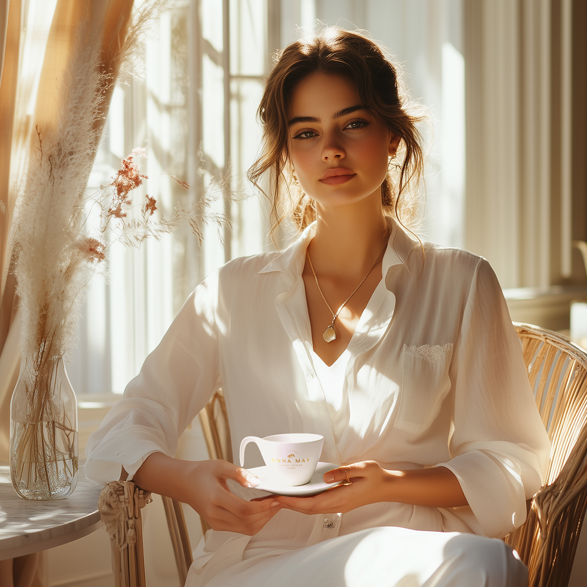 An exclusive cup with a light and subtle shape. The cup features a unique, eye-catching handle shape. The set includes an elongated coaster.