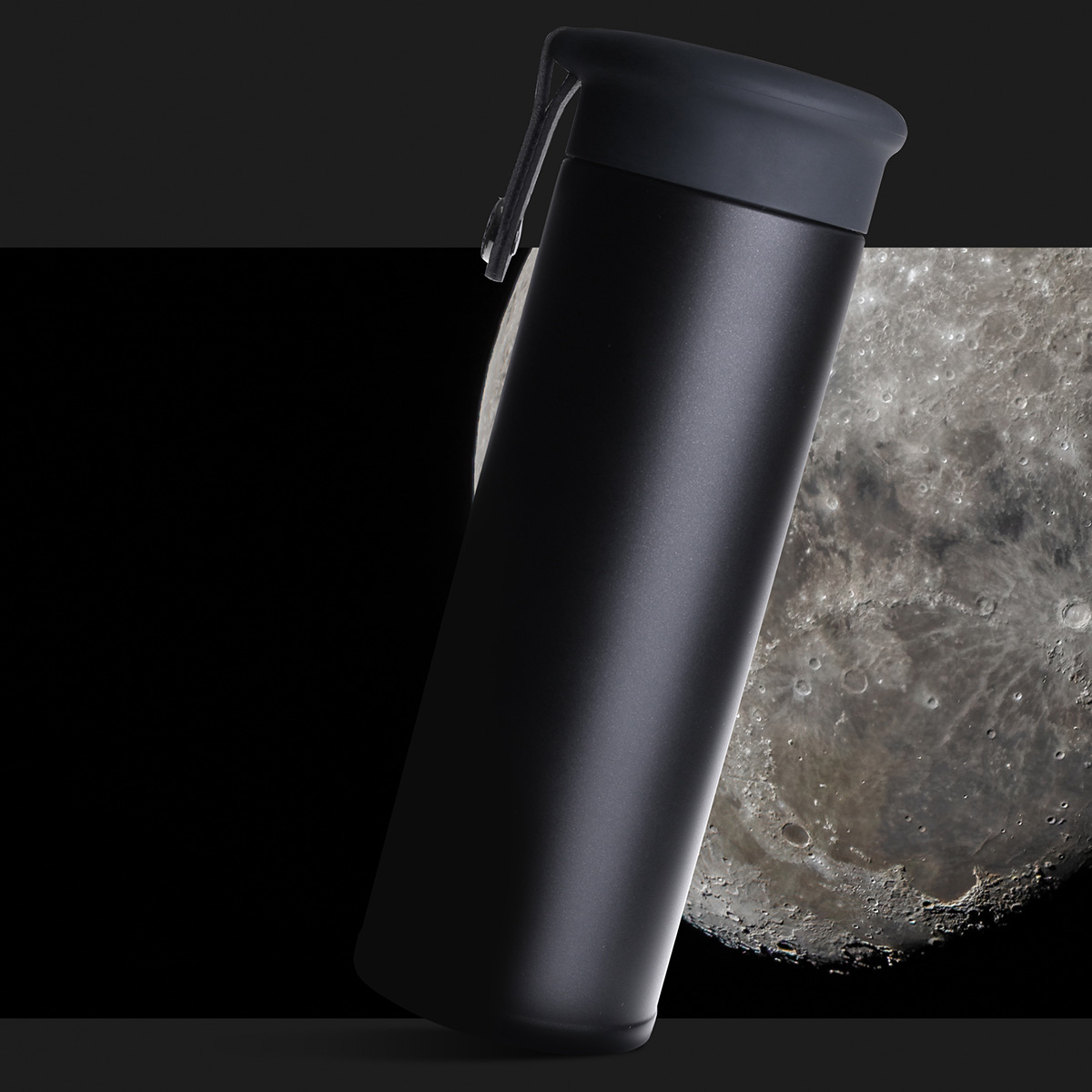 What does the taste of your favorite leaf tea or lemonade with pieces of juicy fruit and an effective promotional gift have in common? COMFORT! Choose the Moon vacuum flask, which by keeping the temperature even longer and having a functional strainer, allows user to uncompromisingly enjoy their favorite drink. Stylish cap in „Soft Touch” version with a functional strap finished with a tasteful clip, will emphasize the prestigious character of the brand. The Moon thermal mug is sold complete with standard unit packaging.
