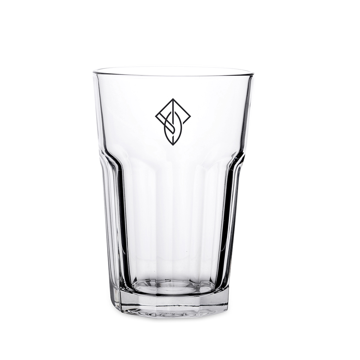 Popular thick glass. The lower part has characteristic grooves for a secure grip. The upper part allows for the application of a presentable print.