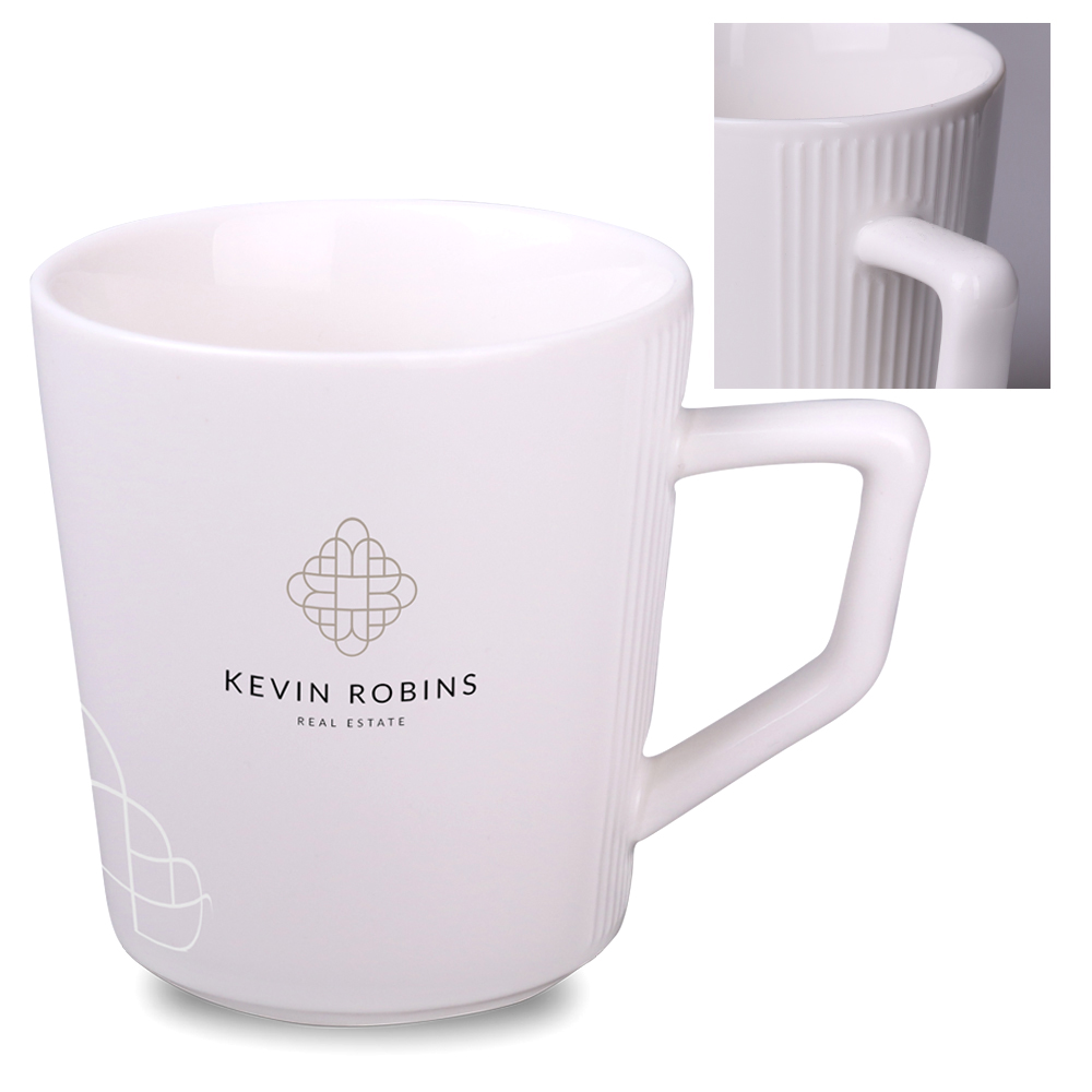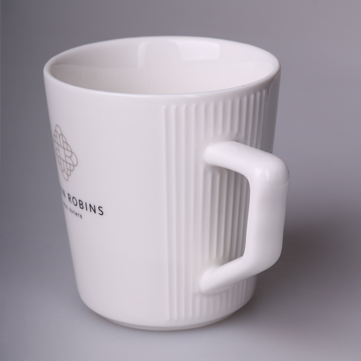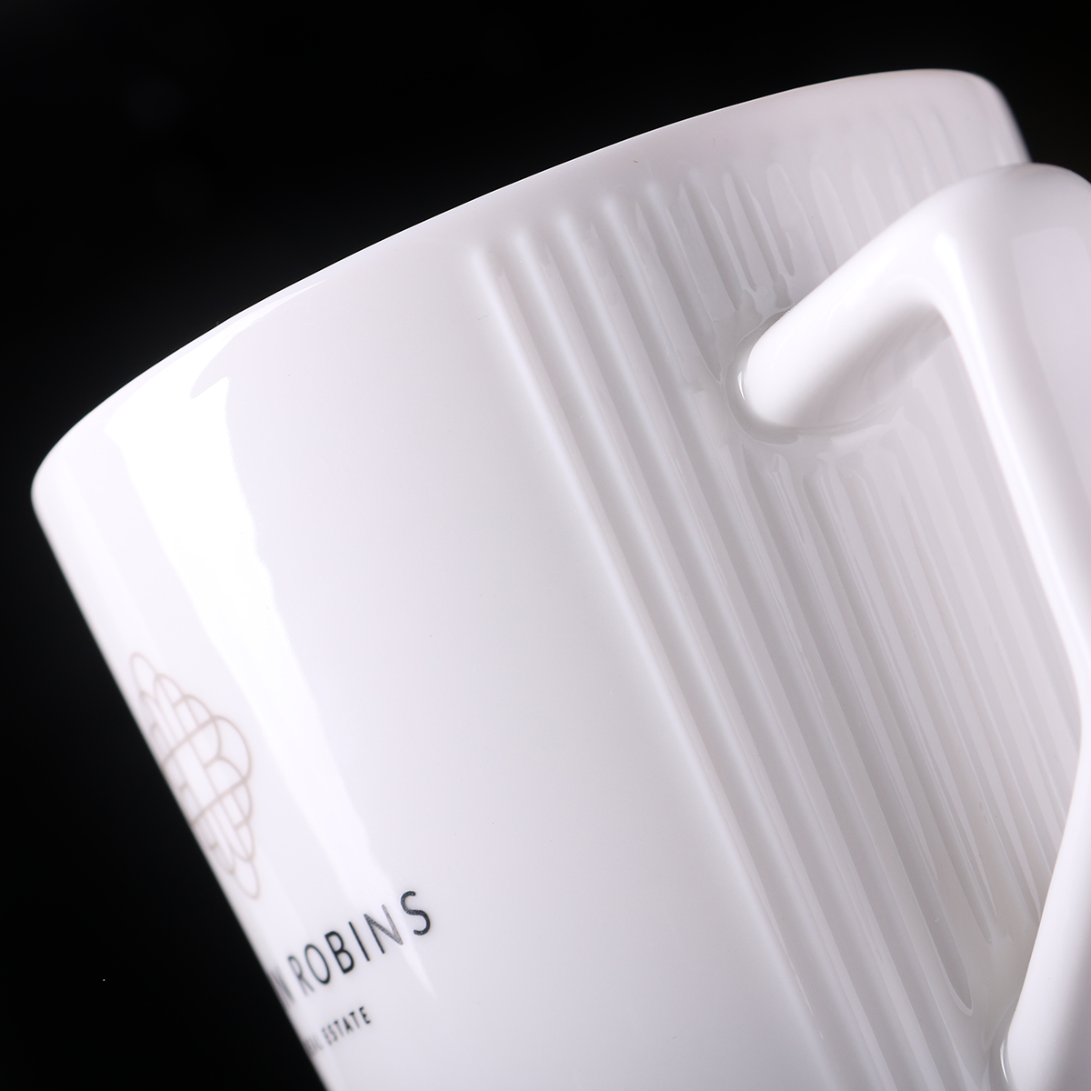 Original mug made of high quality porcelain. It has designer embossing on both sides of the handle. It is distinguished by an interestingly designed handle.