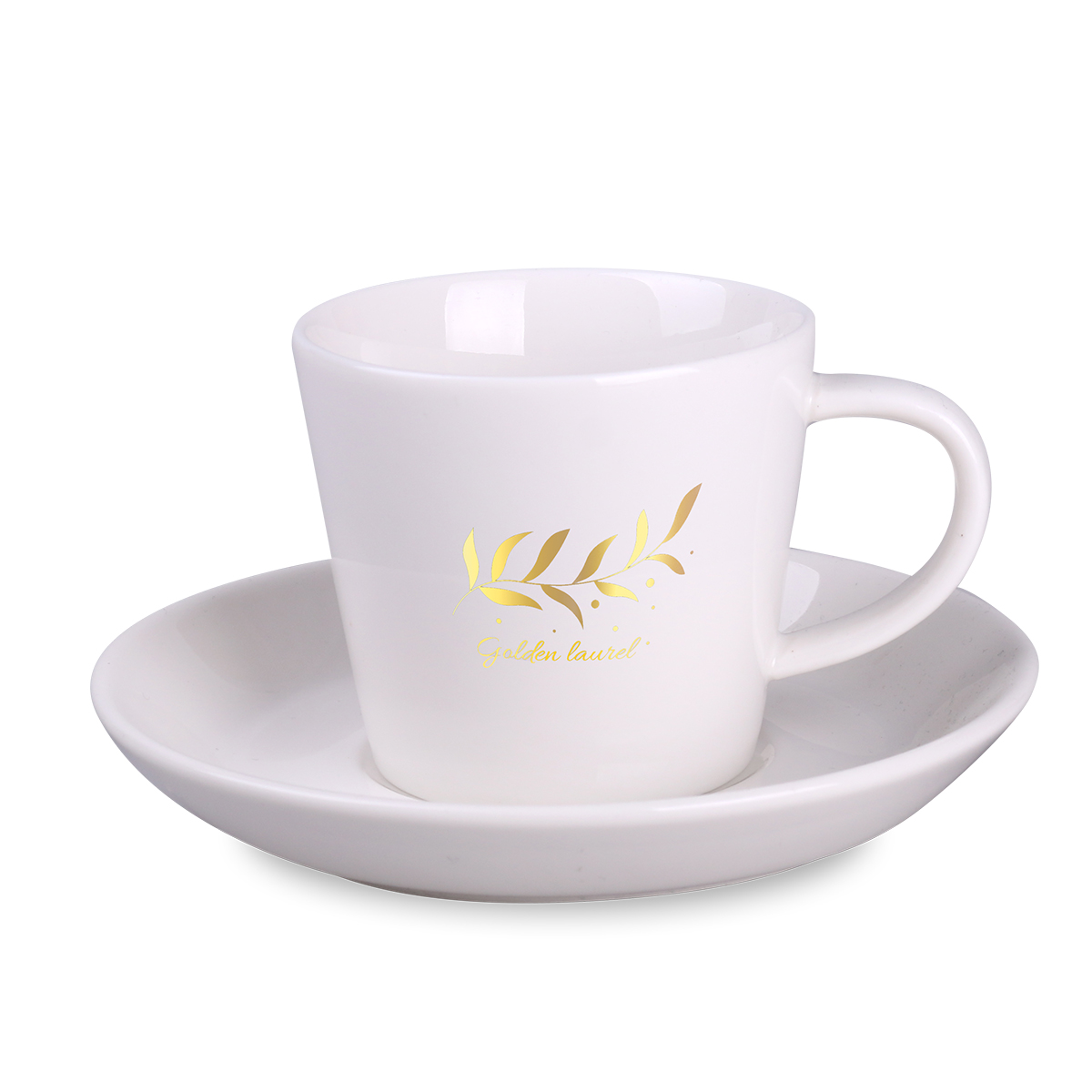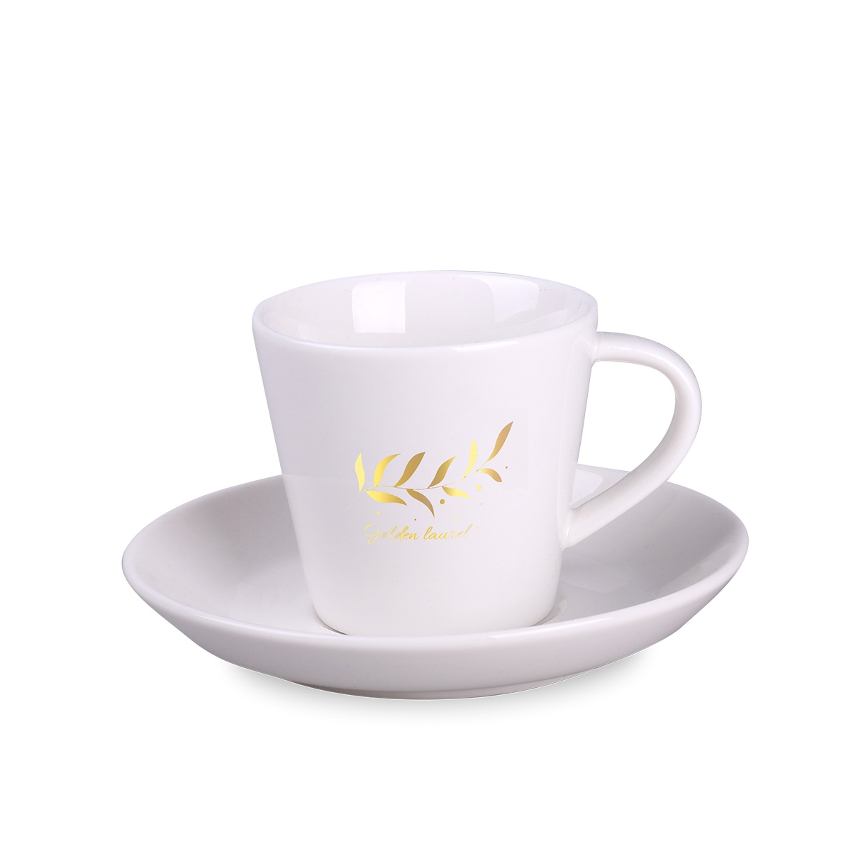 A cup with a simple, classic shape. Made of porcelain. It features an ergonomic handle and offers a large area for decoration. Available in two capacities