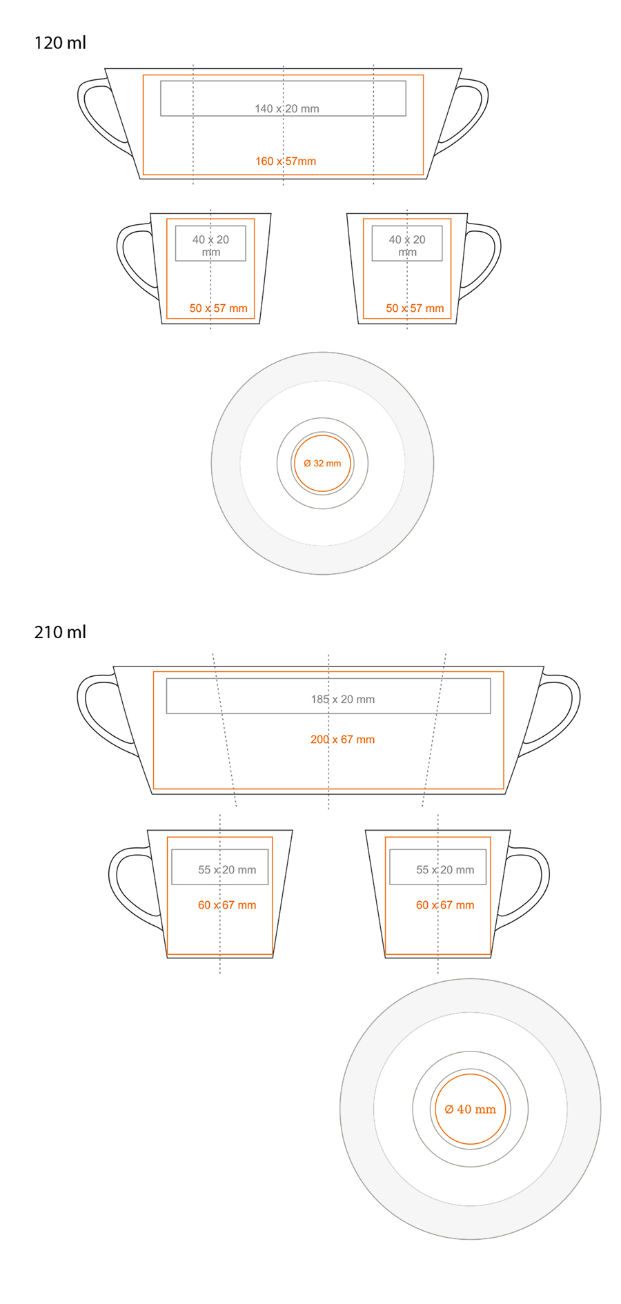 Capacity: 120 / 210 ml Colours: