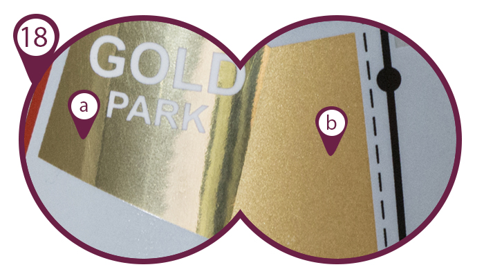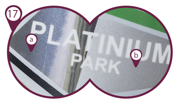 Comparison of colors achieved with CMYK (a) and Pantone (b) prints: